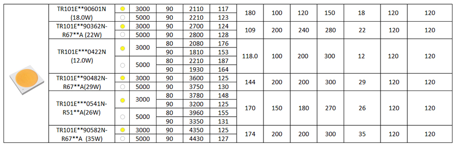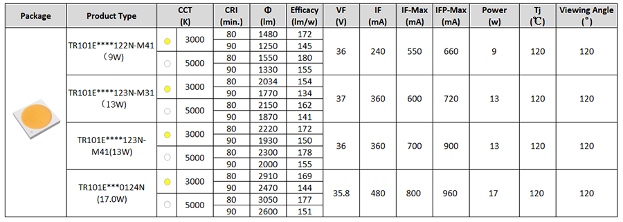 •Reliable EMC package, perfect balance on efficacy, reliability, light quality and system cost