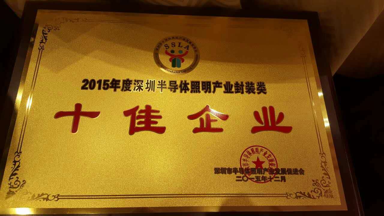 天電光電榮獲2015年“深圳半導體照明產(chǎn)業(yè)封裝類十佳企業(yè)”