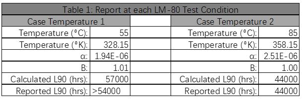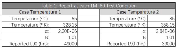 根據(jù)此報告可以推算出光源或模塊光通量下降到初始值的70%(L70)或者90%(L90)的壽命。