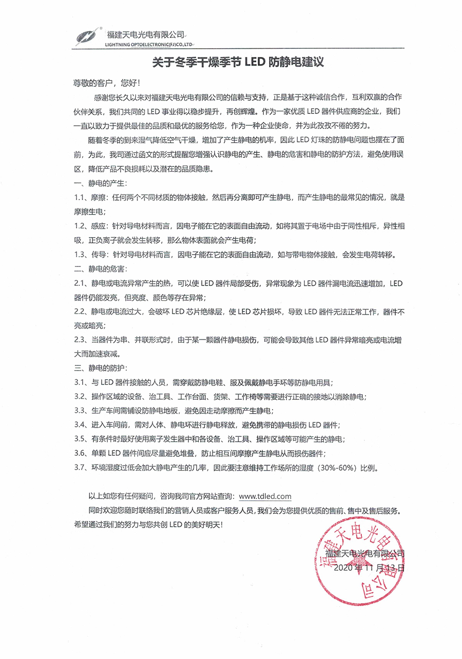 關(guān)于冬季干燥季節(jié)LED防靜電建議